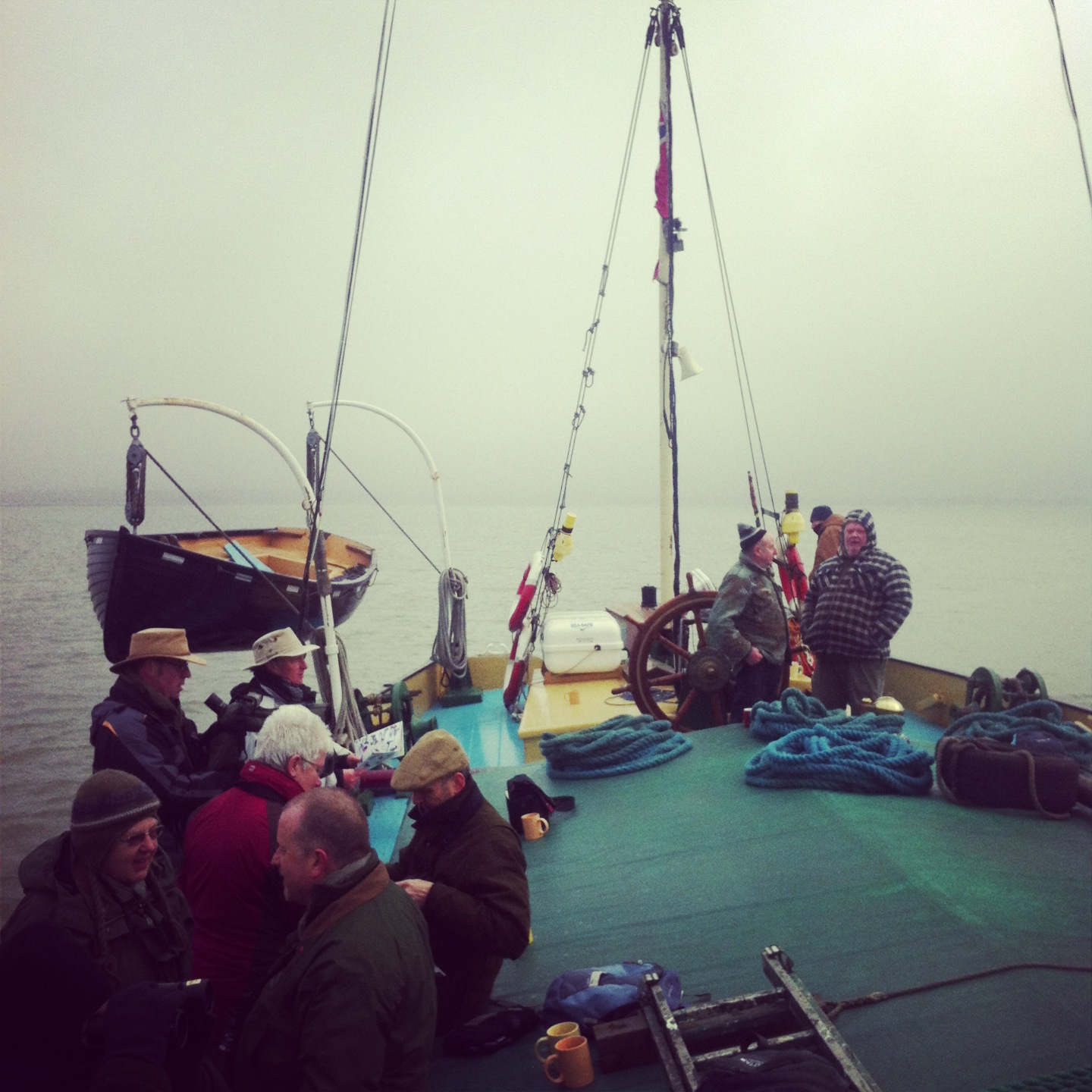 Early last Saturday morn we (that’s me and Father Forté) headed for the old Ha’Penny Pier in Harwich, armed only with flask, thermals and binoculars. We were greeted by a gaggle of similarly shivering (but smiling) folk all destined for the intrepid mist laden voyage up the Stour on the Victor.
